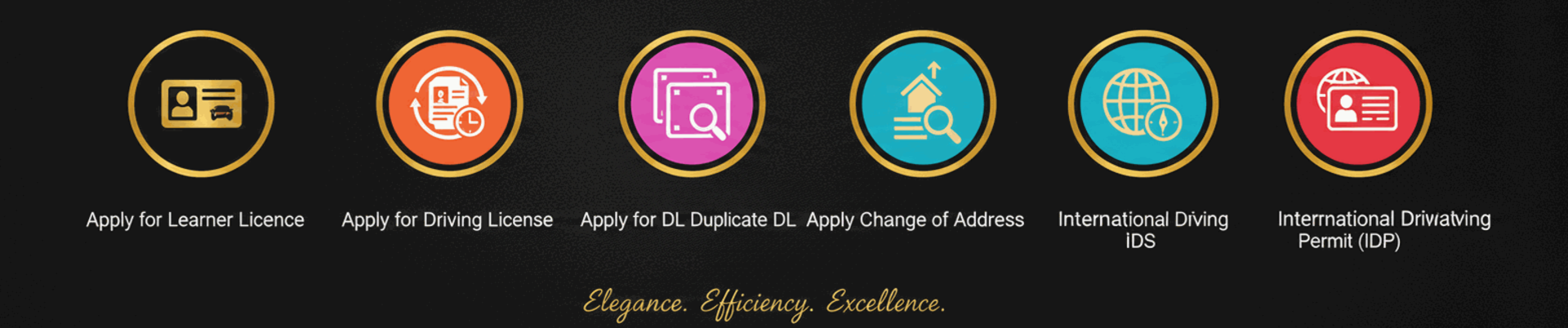 Learner Licence, Driving Licence, DL Renewal, Duplicate DL, Change of Address, International Driving Permit (IDP)